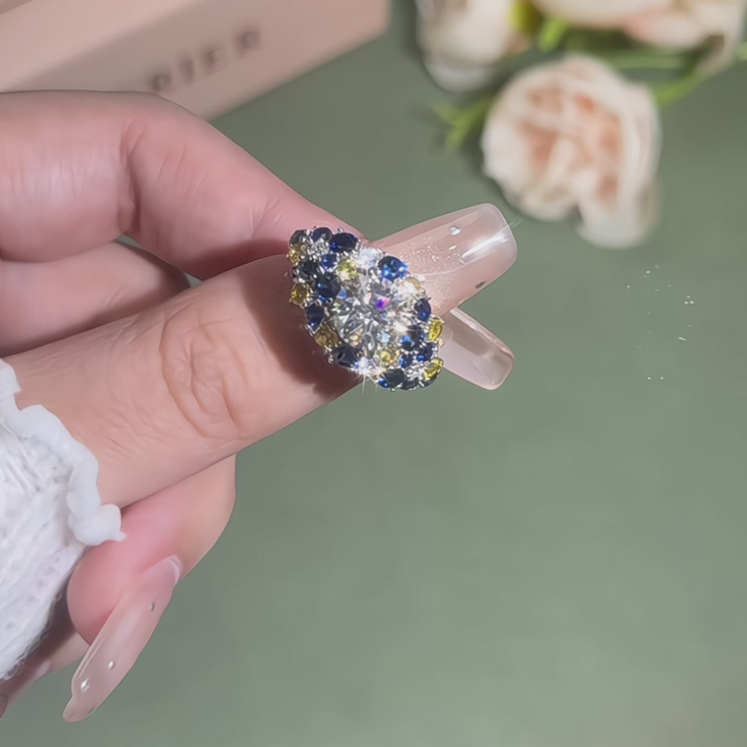 "Starry Night" Moissanite Blue & Yellow Sapphire Cluster Engagement Ring