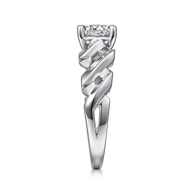 Cathedral Solitaire Round Moissanite X-Cross Twisted Engagement Ring