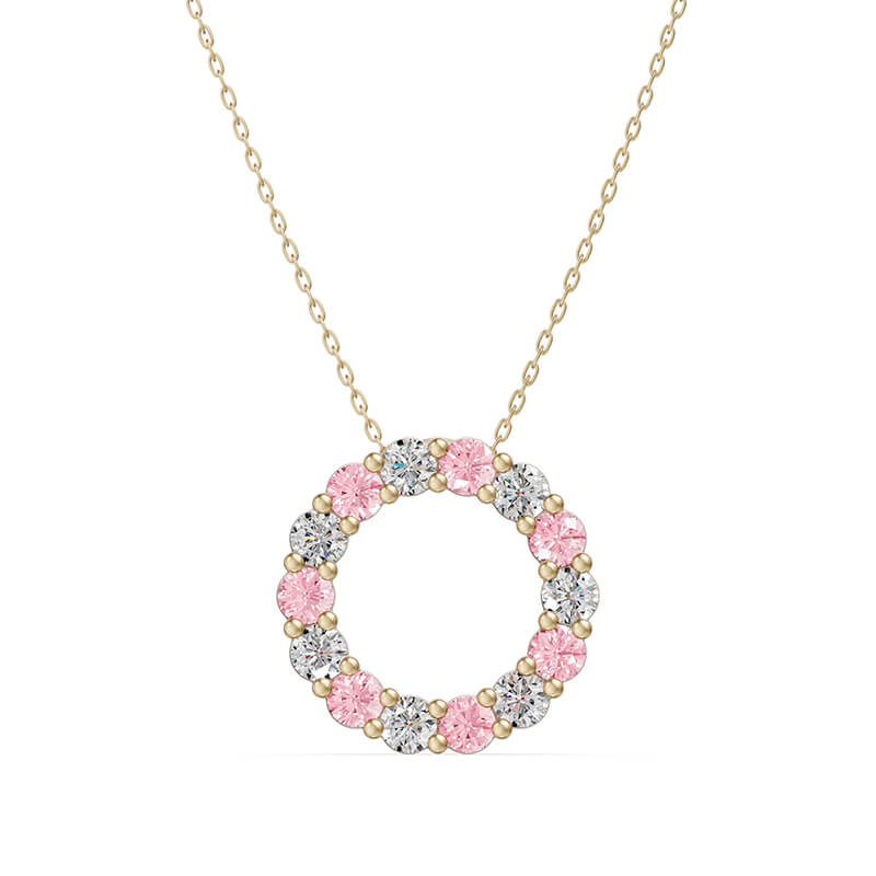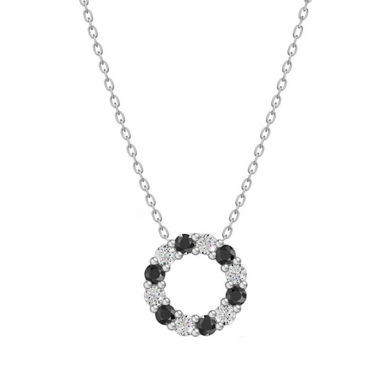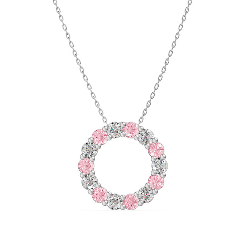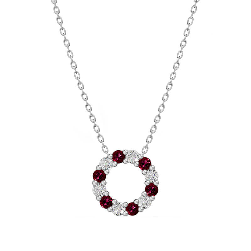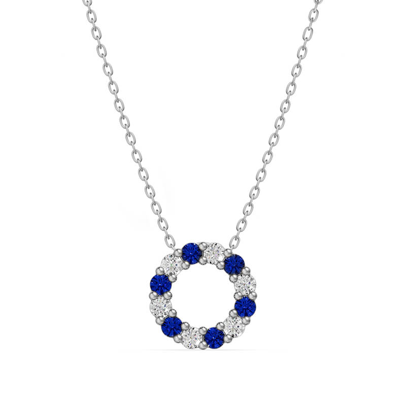 Circle Alternating Moissanite And Gemstone Necklace In Sterling Silver