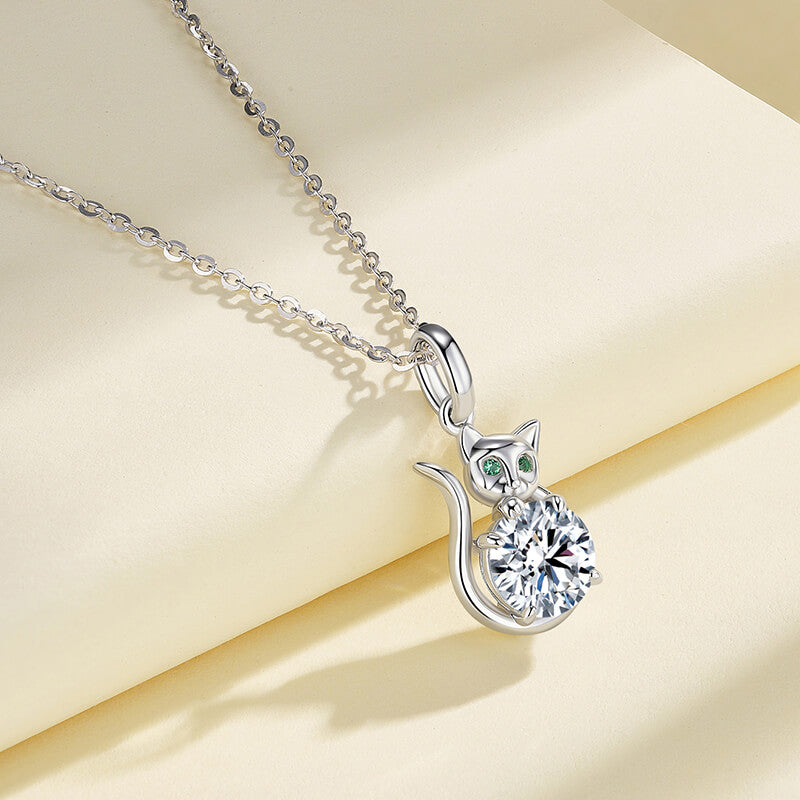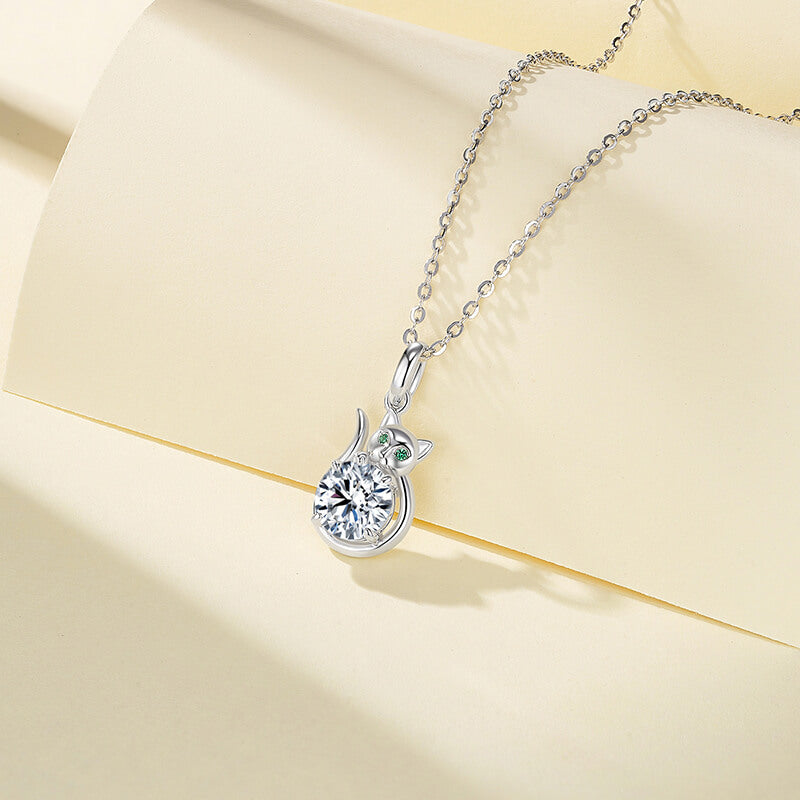 Lucky Cat Moissanite Necklace In Sterling Silver
