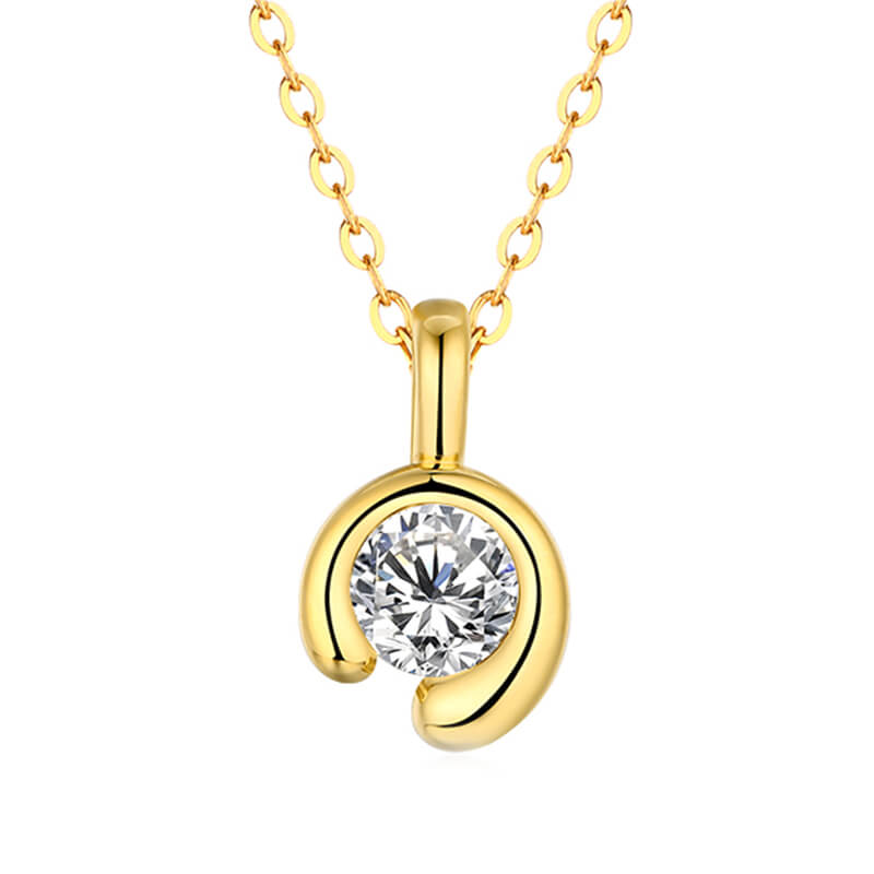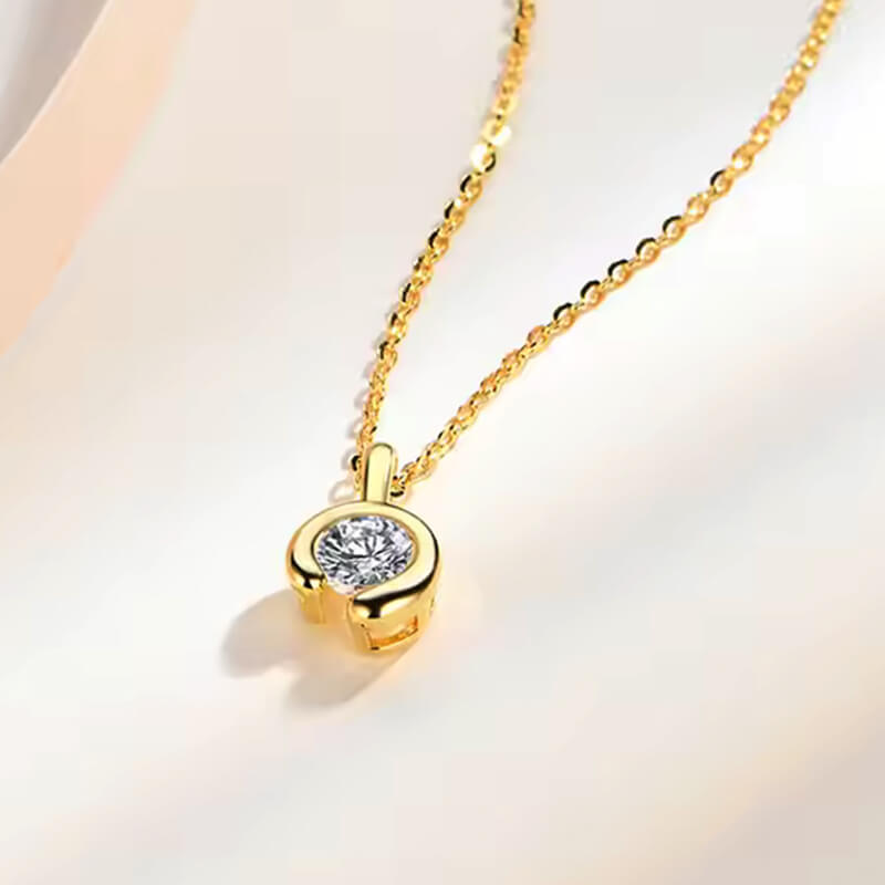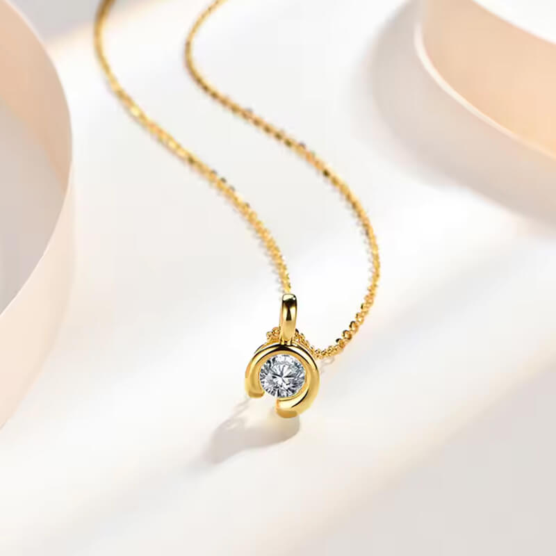 Minimalist Half Bezel Moissanite Necklace In Sterling Silver