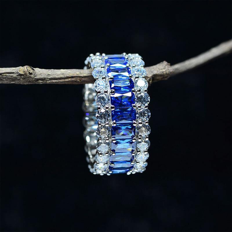 Stackable Square zirconia sterling silver Eternity Wedding Band Ring